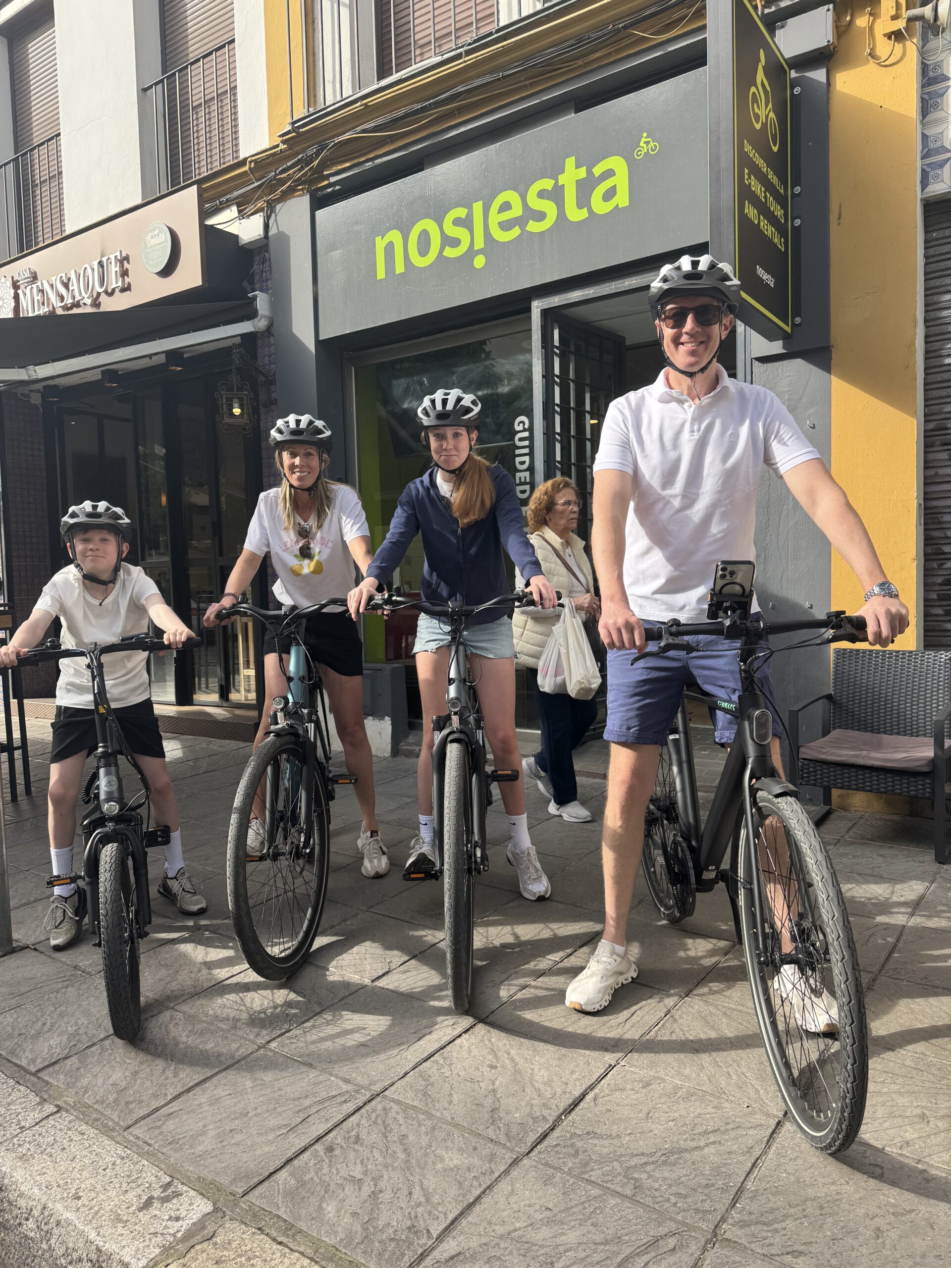 UITSTEKEND Gebaseerd op 134 recensies Armando Flores2025-06-18Trustindex verifieert dat de oorspronkelijke bron van de recensie Google is. This was the very first thing we did when we arrived in Sevilla. My family of 4 had an amazing experience seeing so many beautiful sights on the guided e-bike tour with Tom. We made a last second change of plans due to our train arriving late and the hot weather, and they were so accommodating. It was even Tom’s birthday and he spent it guiding us around for a couple of hours! That’s the kind of service you get here. Thank you so much for already making our trip so memorable. Clive Lambert2025-06-17Trustindex verifieert dat de oorspronkelijke bron van de recensie Google is. Did a 3 hour (electric) bike tour with Tom (from Preston) and it was excellent. Can't speak highly enough of Tom. He was brilliant; understanding what we were looking for and adapting to our own ideas of a bike tour!! Such a great way to explore an amazing city. Tip top! Mariane Wheatleymiller@gmail.com2025-06-16Trustindex verifieert dat de oorspronkelijke bron van de recensie Google is. Tom was great he is English and speaks Spanish. Twice we rented bikes here to explore our fist time on electric bikes, very accommodating and great service. Paul and Jennifer Nuttall2025-06-16Trustindex verifieert dat de oorspronkelijke bron van de recensie Google is. Tom was an amazing guide nothing was too much trouble. He was Knowledgeable about the area and made it interesting throughout. we saw areas in Seville which we would have been possible on foot. Good value for money and great itinerary. I had initially contacted Marko who arranged everything to suite. Paul / Jennifer It's About Time - The clock and watch shop2025-06-15Trustindex verifieert dat de oorspronkelijke bron van de recensie Google is. We (a group of 5) took a private cycle tour with Nosiesta. Friendly and knowledgeable tour guide 'Tom' from the UK took us around Seville for 2.5-3hrs with stops of interest en route. Can highly recommend and can also recommend the electric cycles they use. As Seville can be quite warm, the electric assisted cycling really did help avoid us being too sticky at the finish. All round, 5 stars ! Gene Galushko2025-06-11Trustindex verifieert dat de oorspronkelijke bron van de recensie Google is. Had an amazing English tour of the city. Did a great job, funny and very knowledgeable. Recommended multiple great restaurants around the City. Guido Lemke2025-06-06Trustindex verifieert dat de oorspronkelijke bron van de recensie Google is. Dank unserem Tour Guide Marco wurde es eine sehr kurzweilige Tour und war viel zu Schnell zu Ende. Zur Tour selbst, sehr gut geplant vom etwas morbiden Charm der Expo-'92 ging es am Wasser, Alleen entlang, über die Porzellan Manufaktur, die älteste Kirche der Stadt, mit Kaffee Pause in ihrem Schatten, vorbei an den "Pilzen", der Universität zum Expo-Gelände 29 und zurück. Ein Wort zur Ausrüstung selbst, Top. Fahrrad Helme die über Bluetooth untereinander verbunden sind erleichtern die Kommunikation doch ungemein, ein E-Bike das leicht zu bedienen ist und super funktioniert. Danke Marco, für die vielen Tipps und Empfehlungen. Lucia Lovásová2025-05-25Trustindex verifieert dat de oorspronkelijke bron van de recensie Google is. We had an absolutely fantastic experience with this bike rental shop. The owners were incredibly friendly and helpful, and the bikes were in excellent condition—smooth, clean, and clearly well-maintained. A few of our friends rented bikes from a different company and unfortunately, theirs were in much worse shape and even more expensive. We were so glad we chose this place! If you’re looking for reliable bikes and great service at a fair price, this is definitely the rental shop to go with. Highly recommended! Geert Grommen2025-05-24Trustindex verifieert dat de oorspronkelijke bron van de recensie Google is. Hemos hecho hoy un recorrido con bici eléctrico en Sevilla. Marco de Nosiesta nos ha dado un servicio muy puntual y eso a un precio muy acessible. Carlos Becu2025-05-24Trustindex verifieert dat de oorspronkelijke bron van de recensie Google is. Excelente atención y las bicis muuuuy buenas !!! Recomendado!!!! Muchas graciasGecertificeerd door: TrustindexHet geverifieerde Trustindex-badge is het universele symbool van vertrouwen. Alleen de beste bedrijven kunnen het geverifieerde badge krijgen met een beoordeling boven 4.5, gebaseerd op klantbeoordelingen van de afgelopen 12 maanden. Lees meer
